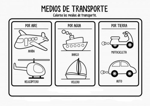 - En compañía de mis padres imprimo la ficha y coloreo los medios de transporte como prefiera.