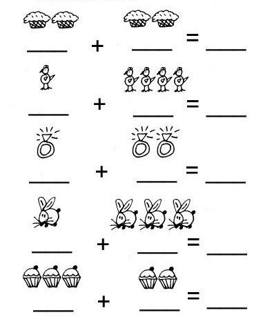 En compañía de mis padres imprimo la ficha y realizo las siguientes sumas colocando los números donde corresponde. Luego coloreo como prefiera.