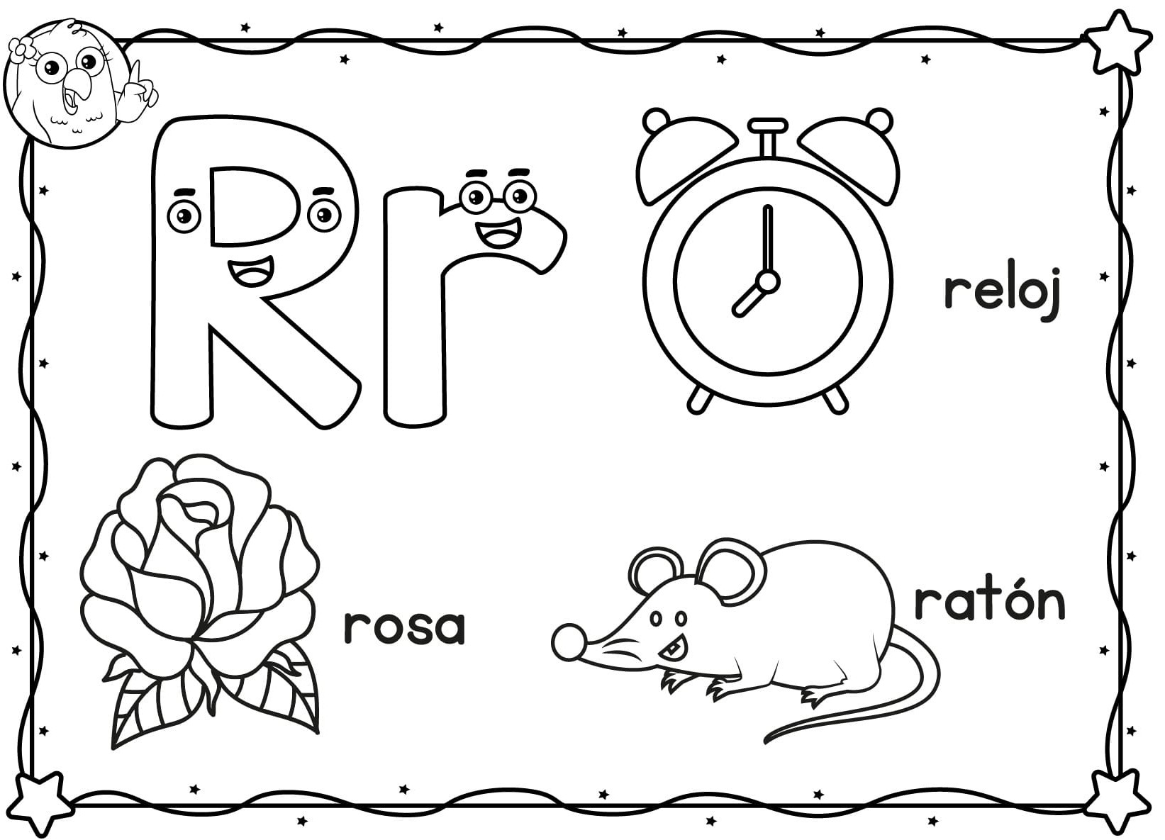 - En compañía de mis padres imprimo la ficha. Coloreo la letra R mayúscula de color verde y la minúscula de color amarillo. Luego decoro las letras con círculos del color que prefieras. Coloreo los dibujos como prefiera y recuerdo sus nombres.