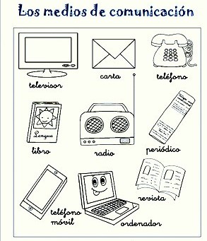 En compañía de mis padres imprimo la ficha y la coloreo. Recuerdo el nombre de cada uno de los medios de comunicación. Coloreo la ficha como prefiera.