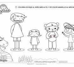 Con la ayuda de mis padres, imprimo la ficha y coloreo el niño más alto rojo, al más bajo de amarillo y los demás del color que prefieras.