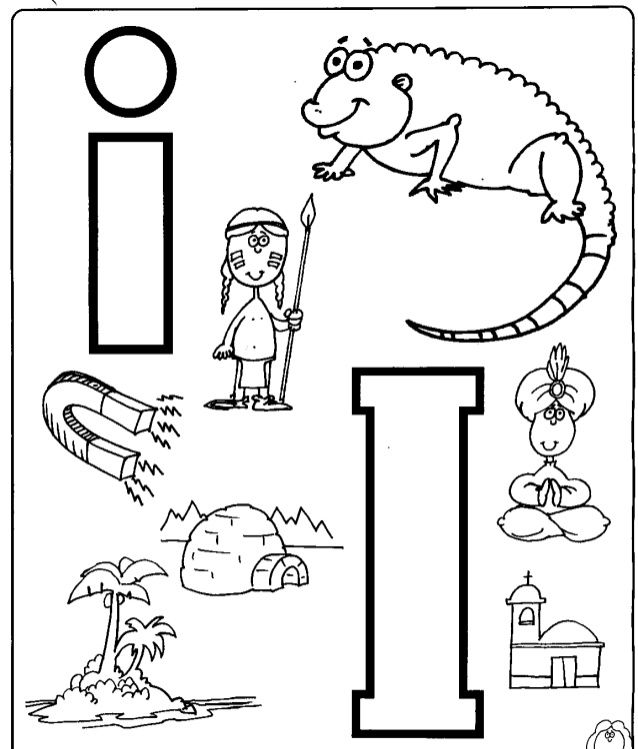 En compañía de mis padres imprimo la ficha de la letra i. Rasgo y pego papel de color morado a la letra I mayúscula. Decoro como prefiera la letra i minúscula. Coloreo los dibujos y recuerdo sus nombres.