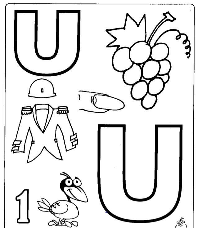 - En compañía de mis padres imprimo la ficha de la letra u; coloreo la u mayúscula de color café. La u minúscula de color amarillo. Recuerdo el nombre de los dibujos y los coloreo como prefiera.